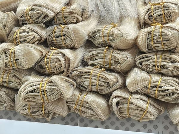 We mainly produce good quality human hair products,for clip in blond hair extension, we select good qulity remy hair,keep hair silky,because one set of clip in hair extension have different size and different quantity of clip ins it.in general it is 110-150grams for one set.it depend your requirement as your hair market.