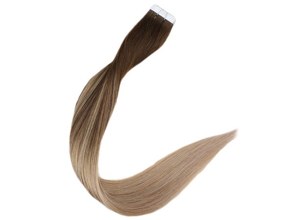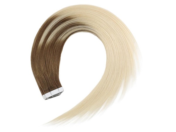 Tape in Human Hair Extension with double tape in hair, this is walker glue tape, it is strong and no fall off,the hair from very better human hair,very silky and smoothly.This picture use white glue double tape.